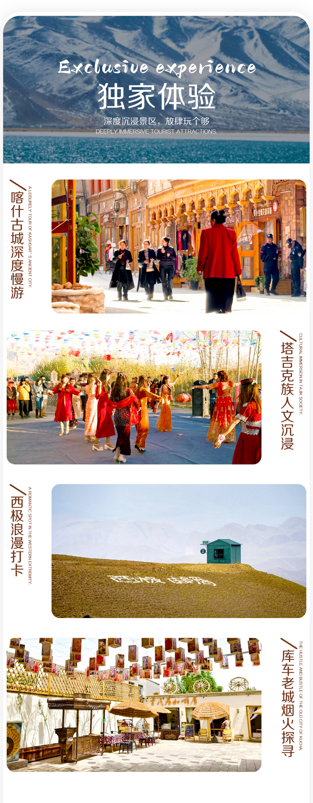 2:门票:全程景点首道大门票:罗布人村寨门票、克孜尔石窟门票、温宿大峡谷门票、柯坪红沙漠门票、西极时光景区门票、帕米尔旅游区(石头城+金草滩)门票。(赠送库车老城(热斯坦路、门巴扎)、克孜尔石窟讲解、瓦罕走廊,不去不退)。