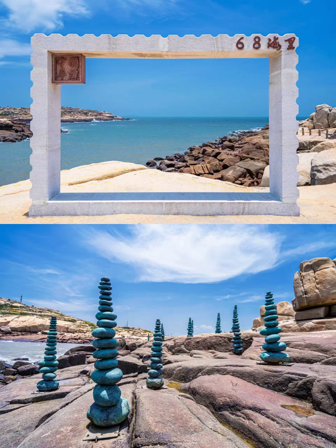 - 下午 大福湾这里有一条白色的步道很特別,延海边一直可接到海湾,岸上有造形船,很适合拍照,再走下去有廷伸入海的白色走廊很美,适合打卡,视野很好,是浪漫的感觉。- 下午 游玩【猴研岛】,打卡网红小公路、花莲七星潭同款星星塔许愿,在距离台湾仅68海里邮戳相框合影;