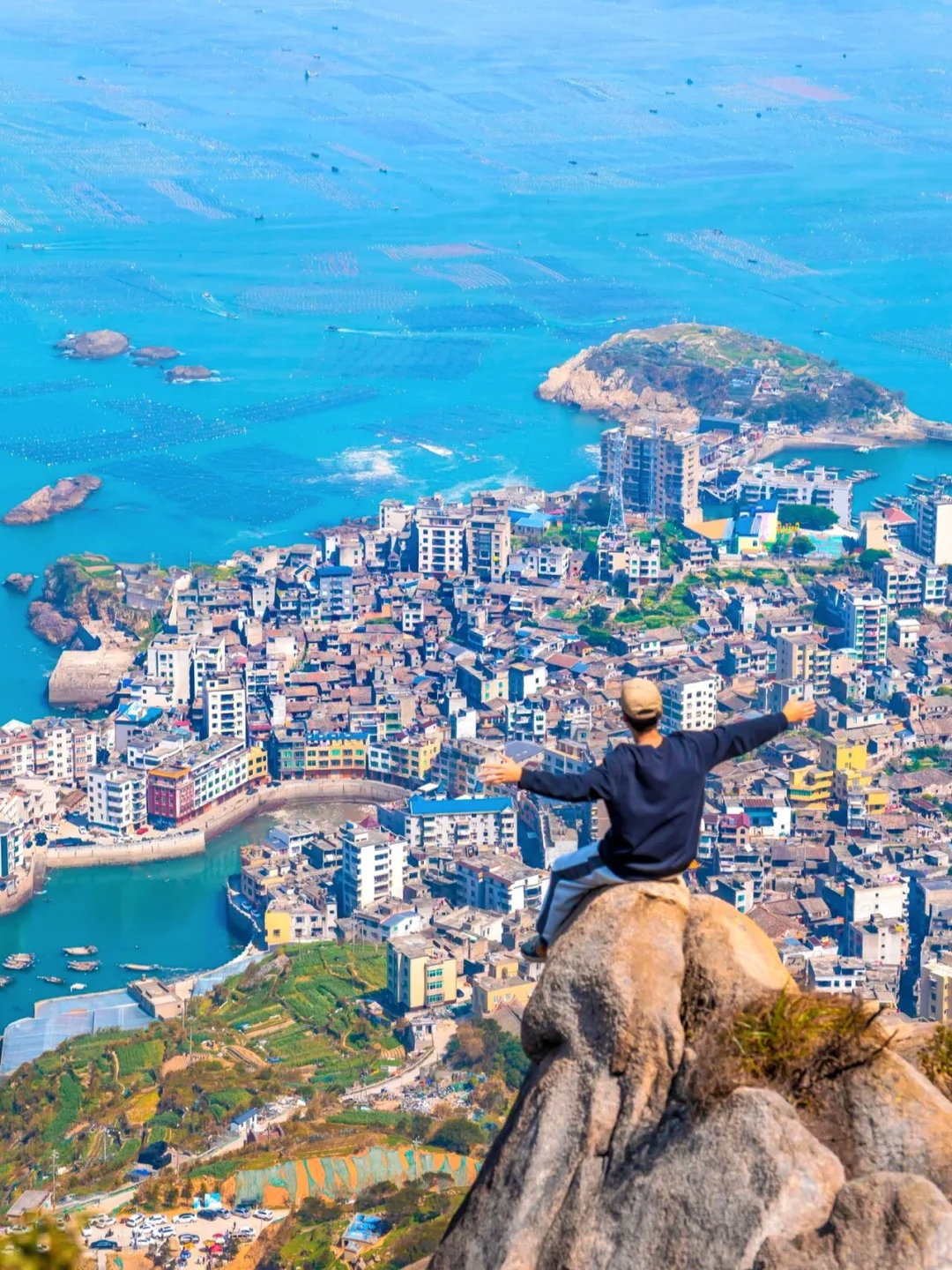 - 上午 前往旗冠顶,登顶需爬约1800级台阶,单程约1小时,巴西里约热内卢基督山同款角度俯拍渔港大片;徒步下山移步换景,每一个角度都可以美出不一样的颜色。(如不想爬山的朋友可以直接去奇达村逛)。