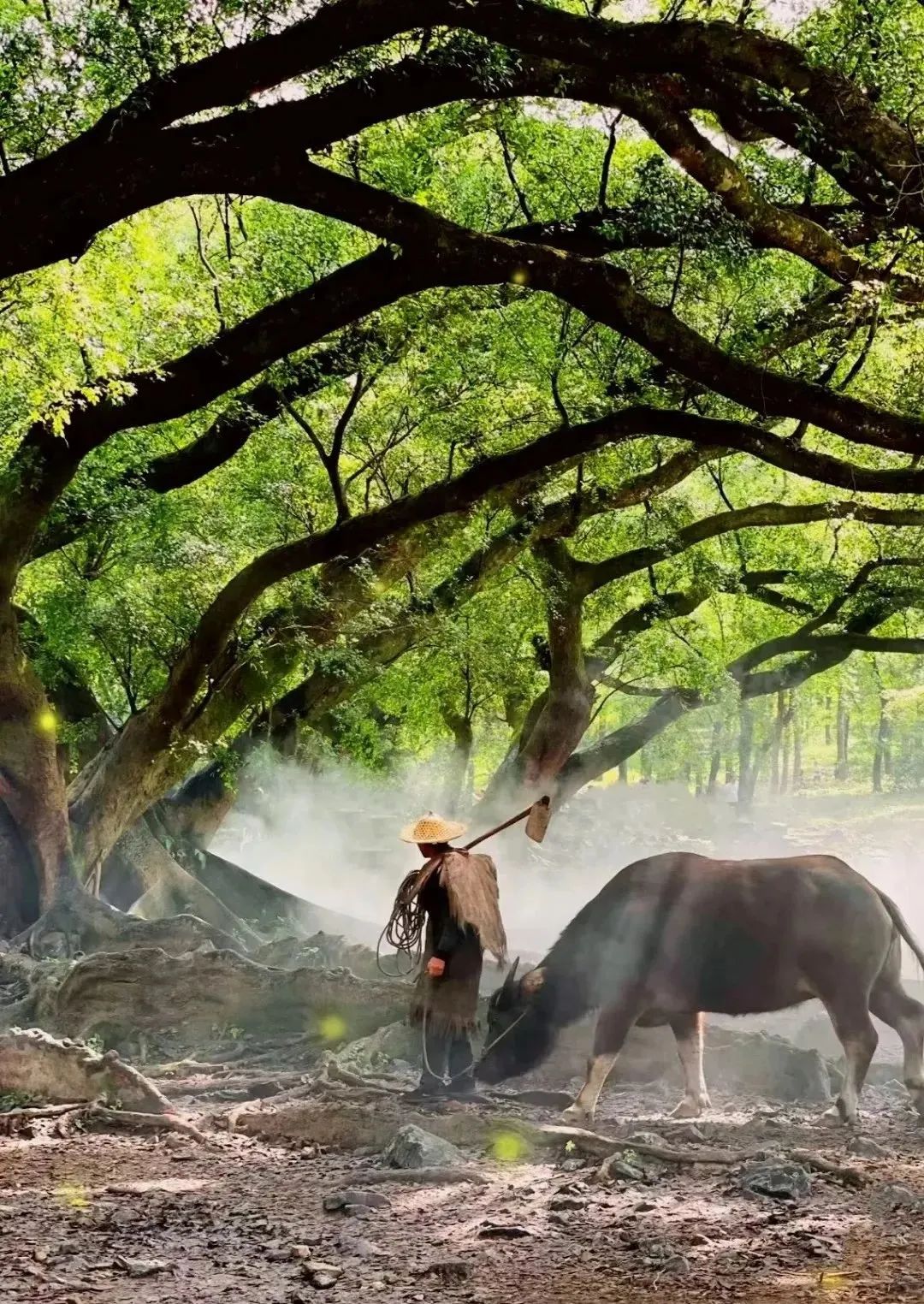 - 下午 前往杨家溪榕枫公园,古榕树虬枝伸展,遮天蔽日。古榕树下我们先安排老农牵牛拍摄:在古榕树下布置烟雾场景,阳光透过榕树间隙照射下来形成丁达尔光线,此时畲族阿婆挑担子,阿公牵牛配合拍摄;随后安排村姑赶鹅拍摄,这是杨家溪榕树下的新晋宠儿,村姑模样打扮的妇女赶着一群白鹅于榕树下觅食,憨态可掬的鹅群很是讨喜。*傍晚 如果时间赶趟我们去小皓滩涂欣赏日落美景,在这里有机会看到渔民退潮后晚归劳作的场面。