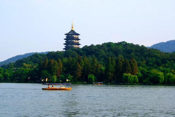湖中有三岛:三潭印月,湖心亭,阮公墩。云山秀水是西湖的底色;山水与人文交融是西湖风景名胜区的格调。西湖之妙,在于湖裹山中,山屏湖外,湖和山相得益彰。西湖的美,在于晴中见潋滟,雨中显空蒙,无论雨雪晴阴都能成景。
