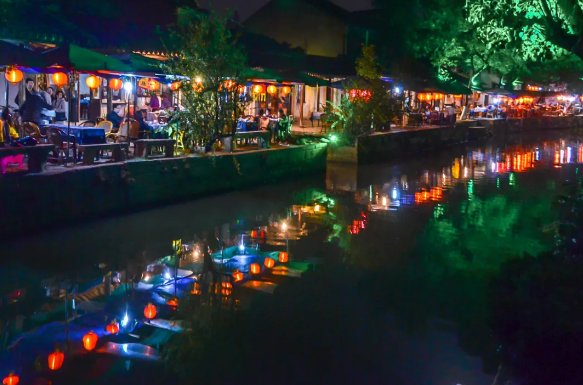 夜游西栅和白天是完全不同的感受。特别是坐着乌蓬船(西栅船游是不包含在门票内的,需要自行购票)泛舟河上,河面上是被灯光映照出彩色倒影的一座座古桥,顺着河道看两岸的古建筑在色彩斑斓的灯光中呈现出新的意境,新旧交替恍然如入两座古镇,一个是昨日的班驳,一个是今日的绚烂。晚饭可以在景区内解决,西栅里种类繁多的小吃,有特色的小店,饭馆,酒吧……来了你就不想离开,巷子里的小店您细细逛,河边找个小馆您边吃边聊,再叫一杯三白酒您慢慢品,找个最佳拍摄点拍摄绝美夜景,体验当地真挚的水乡民风,别迷路哟!