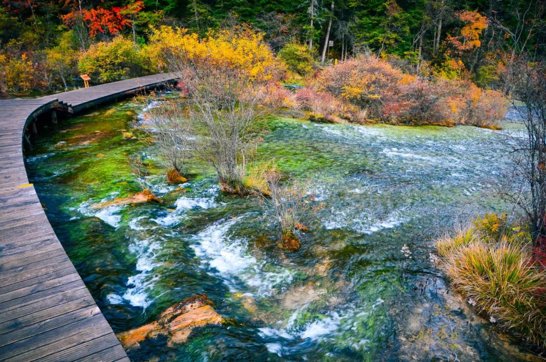【九寨沟】由翠海、叠瀑、彩林、烟云、雪峰以及奇异多彩的藏族风情,组成格调自然风韵独具的仙境。清冽透底,变幻无穷,在阳光的折射和反射下呈现五彩斑斓的色彩。“黄山归来不看山,九寨归来不看水”,我们会有一整天的时间去游玩九寨沟,充分摄影游玩。