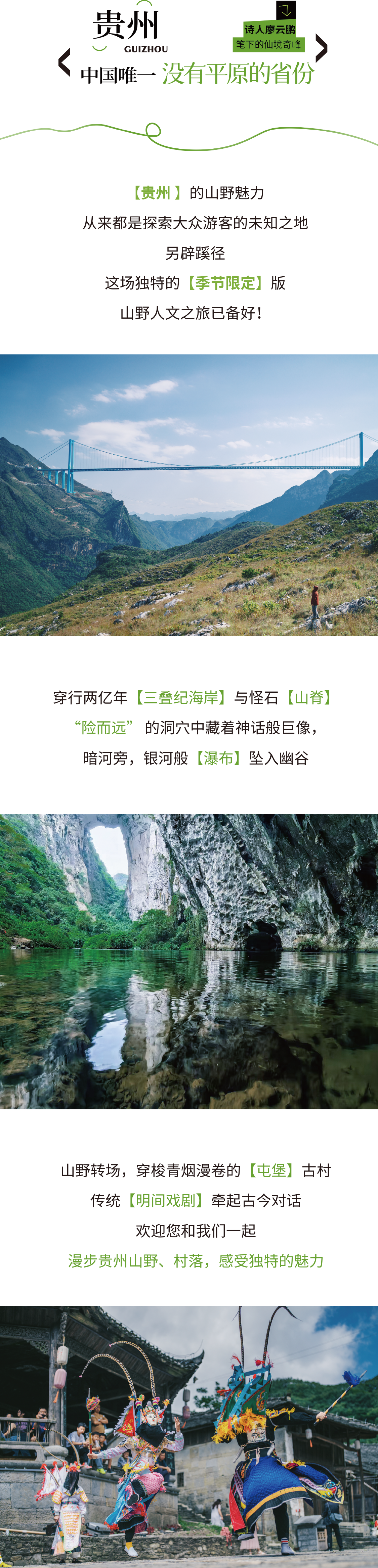 ①本日行程根据出行季节或天气情况自动调整,确保最佳体验。A线:关岭冰臼(10月-次年4月)/B线:花江峡谷(5月-9月)