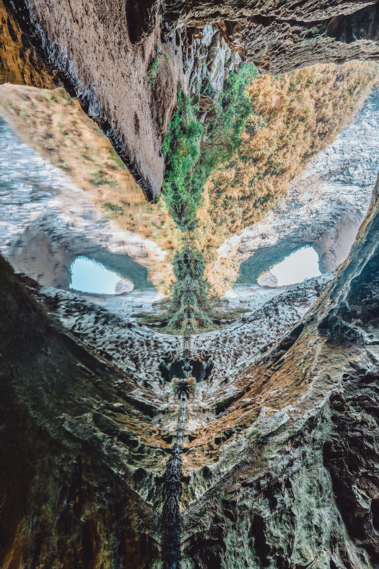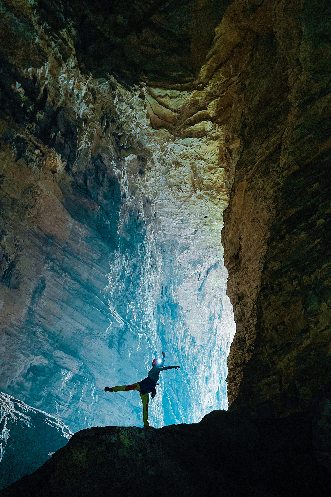 今日是一场真正的“地心游记”,我们将依次穿越天坑、崖壁小路和原始灌木林,进入神秘的溶洞系统。在头灯的照射下,洞内奇观缓缓展开。