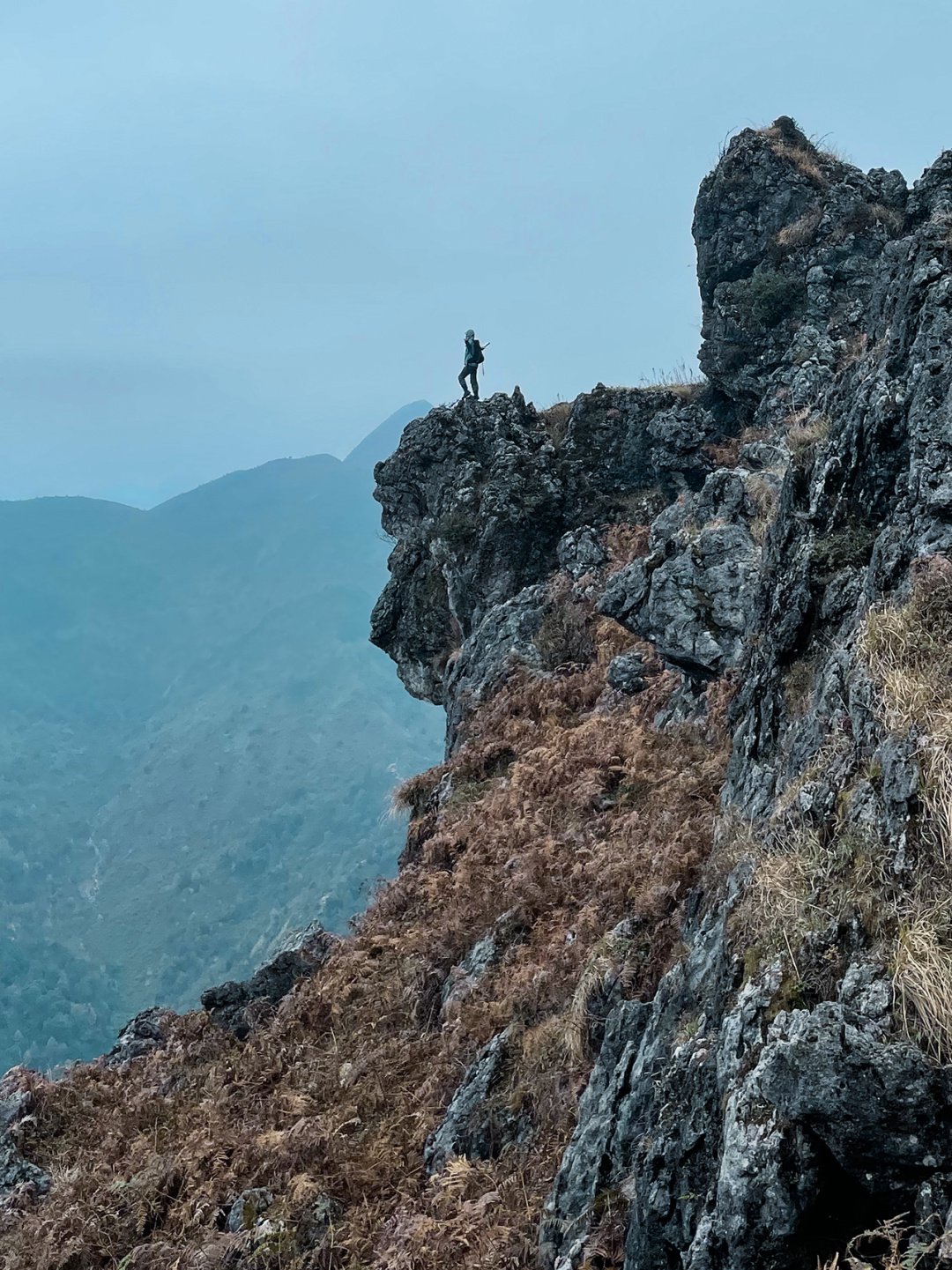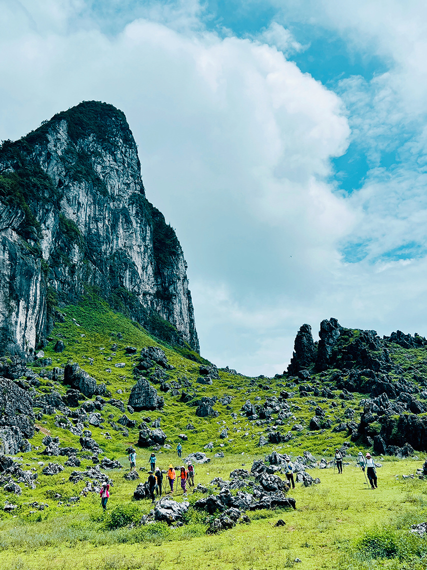 ①今天的徒步路程约10公里,海拔爬升为800米(下降约500米),以喀斯特地形地貌为主,需要走一段乡道和爬坡以及穿越蕨类灌木丛、山脊石林等。
