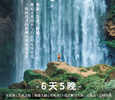 早餐后乘车前往徒步起点。热身后,我们将沿着湿滑陡峭的原始小径下探峡谷,当轰鸣水声渐近,磅礴的羊皮洞瀑布豁然眼前。您可在水雾弥漫中尽情创作大片。中午在开阔处分享自带路餐。下午可随领队探索瀑布旁的洞穴,随后徒步环线返回,乘车回贵阳。