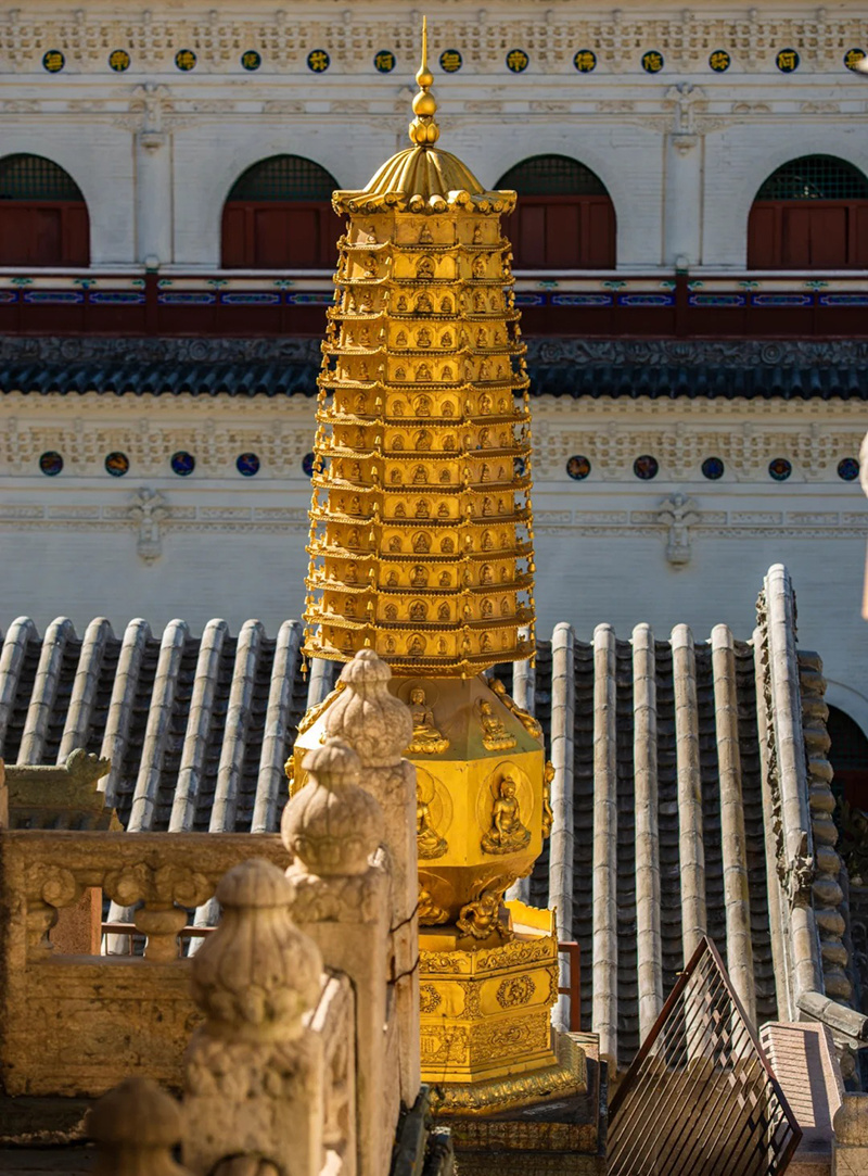 塔院寺(白塔寺)以大白塔为标志,高56.4米,内藏释迦牟尼舍利,白塔为元代尼泊尔匠师阿尼哥设计,信徒绕塔祈福,毛泽东1948年曾路居寺内方丈院。五台山寺庙群是宗教圣地,更是建筑、雕塑、文化的瑰宝,2009年被列为世界文化遗产。